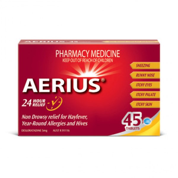 AERIUS relieves symptoms associated with allergic rhinitis (including hayfever), such as sneezing, runny or itchy nose, itchy palate and itchy, red or tearing eyes