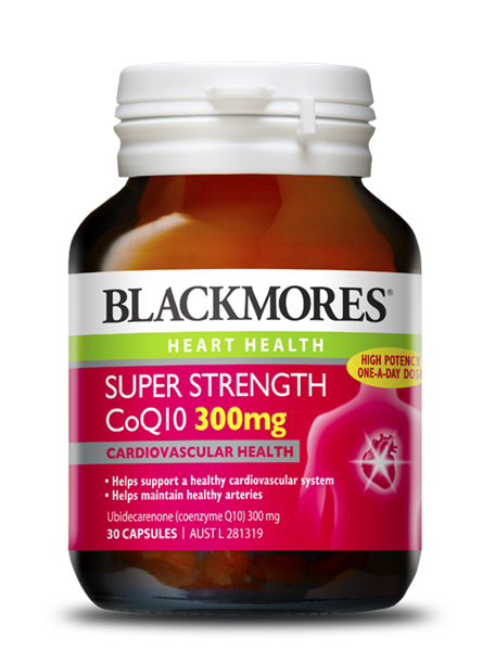 Blackmores Super Strength CoQ10 300mg contains a potent dose of coenzyme Q10 (CoQ10), an antioxidant enzyme that is found naturally concentrated in the heart muscle