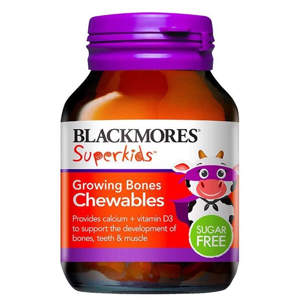 Blackmores Superkids® Growing Bones Chewables are a 99.5% sugar free formulation with lactose-free calcium & a naturally derived form of vitamin D3 to help support kid’s healthy growth and development.
