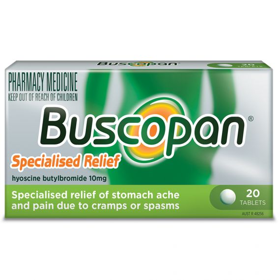 For relief of stomach ache and pain due to cramp or spasm- The active ingredient of buscopan is obtained from the Australian native duboisia bush