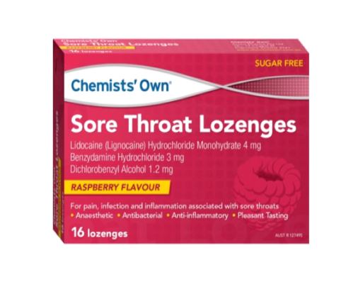 CHEMIST OWN CO S/THROAT LOZ 16 RASPBERRY