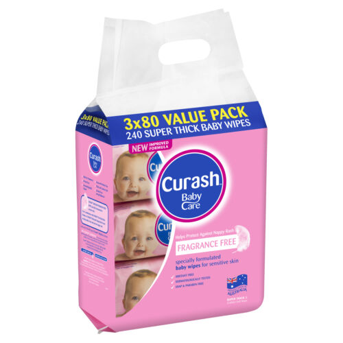 Curash Fragrance Free Baby Wipes Bulk 80 x 3 Pack