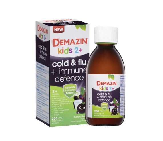 Demazin Kids 2+ Cold & Flu + Immune Defence Natural Berry Oral Liquid supports immune health