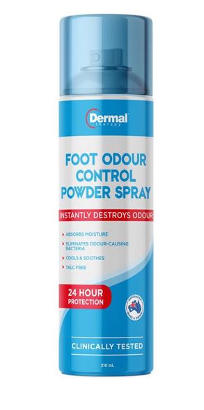 Dermal Therapy Foot Odour Control Powder Spray is a unique, triple active action formula that effectively achieves total control over foot odour