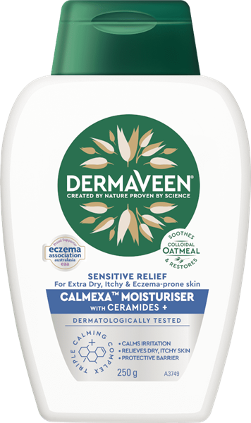 DermaVeen® Sensitive Relief Calmexa™ Moisturiser formulated with a unique Triple Calming Complex of Aloe Vera, Allantoin, and Calendula to soothe dry & irritated skin