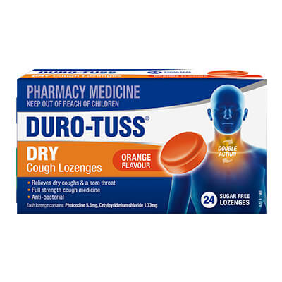 Duro-Tuss Dry Cough Lozenges suppresses unproductive coughs and soothes sore throats.
