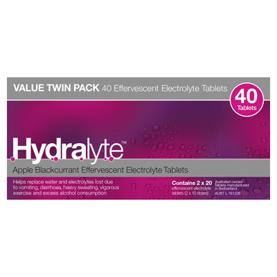 Hydralyte is an Oral Rehydration Solution, scientifically formulated to replace water and electrolytes lost due to vomiting, diarrhoea, heavy sweating, vigorous exercise and excess alcohol consumption.
