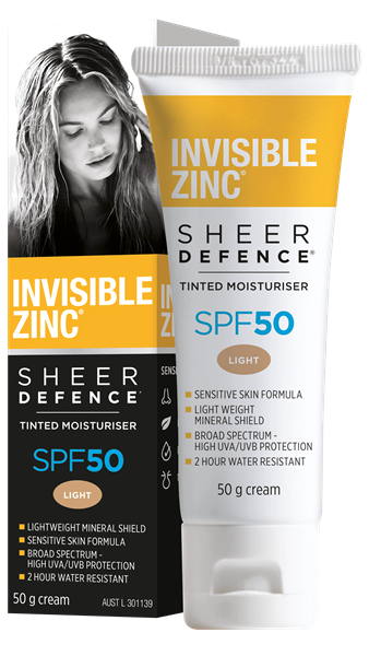 Invisible Zinc Sheer Defence Tinted Moisturiser Light SPF50 50g