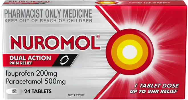 Nuromol Tablets is the only clinically proven pain relief tablet to contain ibuprofen 200mg and paracetamol 500mg.This unique combination is produced using a patented technology known as Synchro-Tech which ensures they are released together to target pain more effectively, so you can quickly get on top of distracting pain and continue on with your day