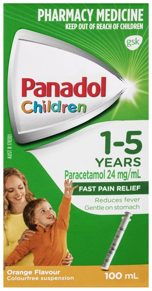 Panadol Child Colourfree Suspension 1-5 years Orange Flavour 100ml