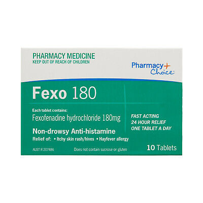 Pharmacy Choice Fexofenadine 180mg is for the relief hayfever allergy and itchy skin rashes/hives.